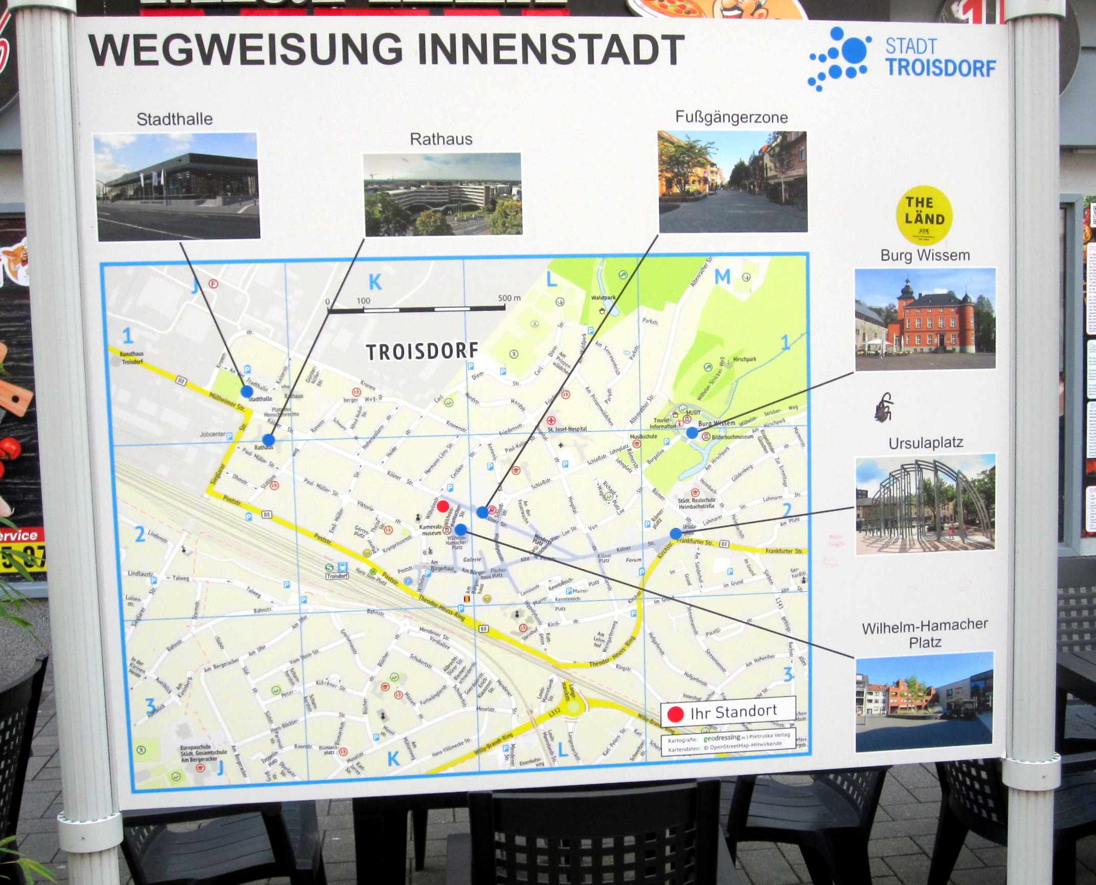 Beschreibung: Wegweiser in der Troisdorfer Innenstadt