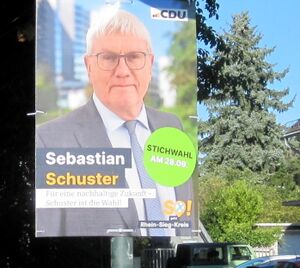 Bei der Stichwahl am 28. September 2025 wurde Sebastian Schuster erneut zum Landrat des Rhein-Sieg-Kreises gewählt.